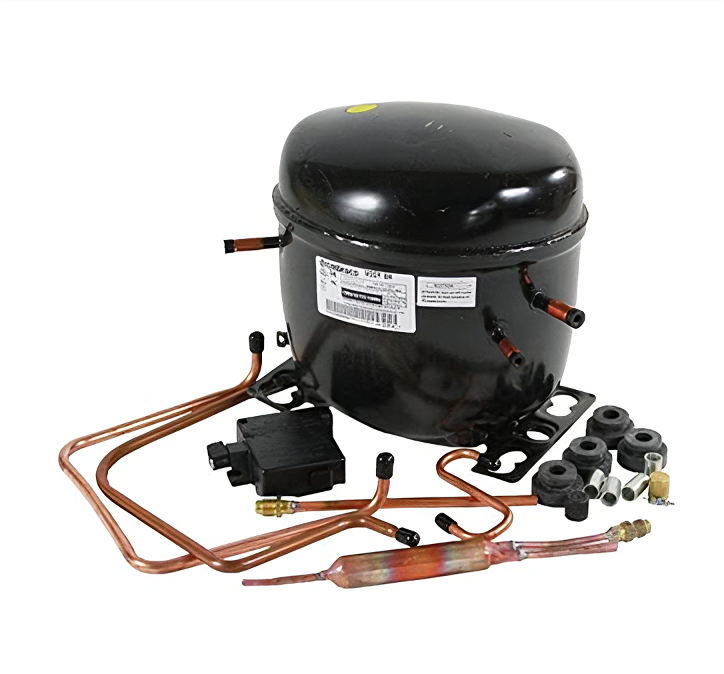 El kit de compresor de refrigerador GE Appliances es una bomba de desplazamiento positivo que comprime el refrigerante en el sistema sellado.
